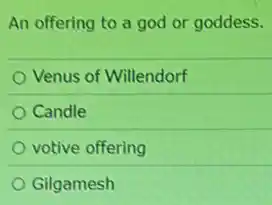 An offering to a god or goddess. Venus of Willendorf Candle votive offering Gilgamesh