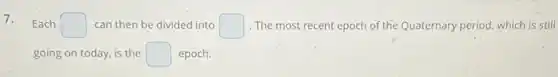 7. Each square can then be divided into square . The most recent epoch of the Quaternary period, which is still going on today, is the square epoch.