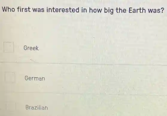 Who first was interested in how big the Earth was? Greek German Brazilian