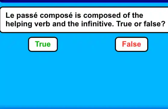 Le passé composé is composed of the helping verb and the infinitive.True or false?
